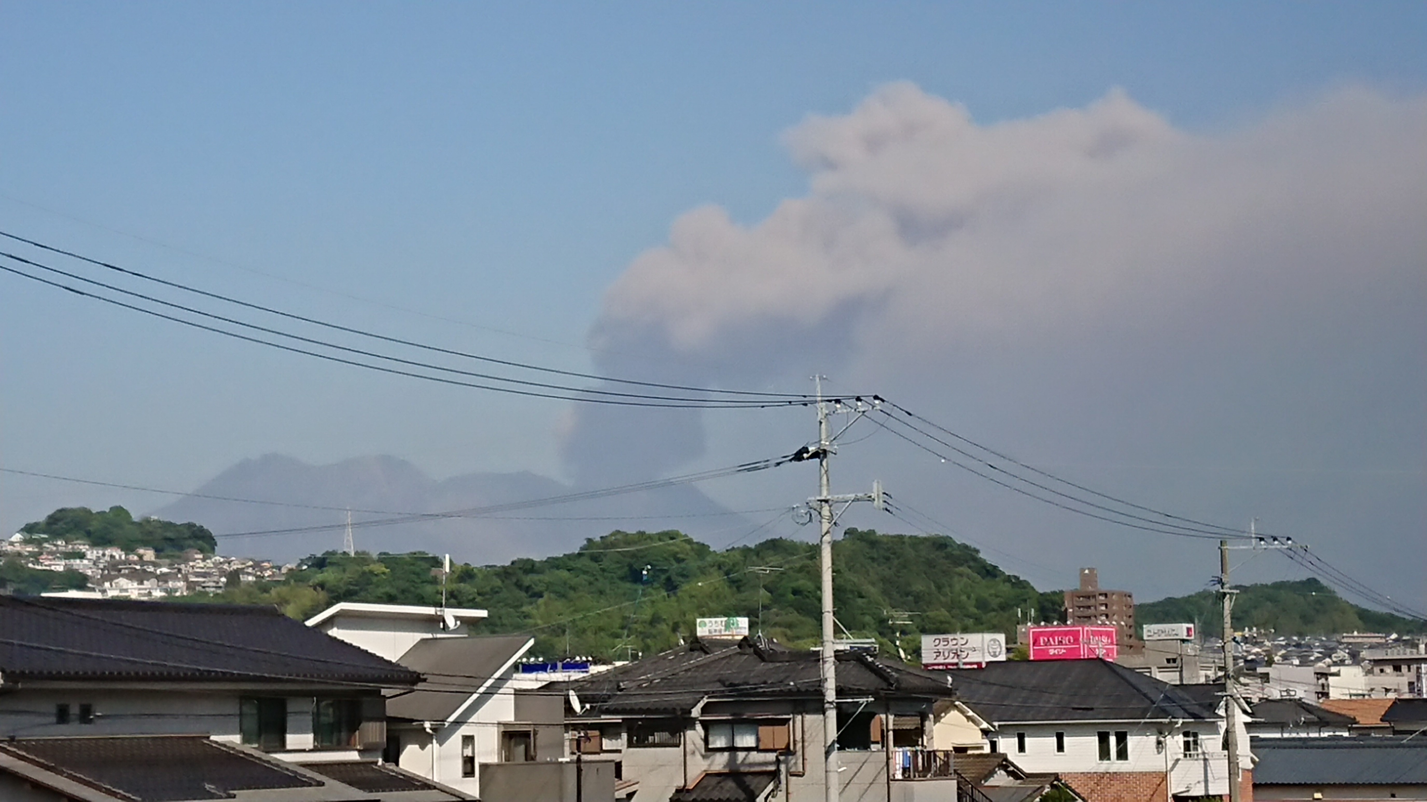 ↓噴火して話題になった、新燃岳と硫黄山がある霧島連山