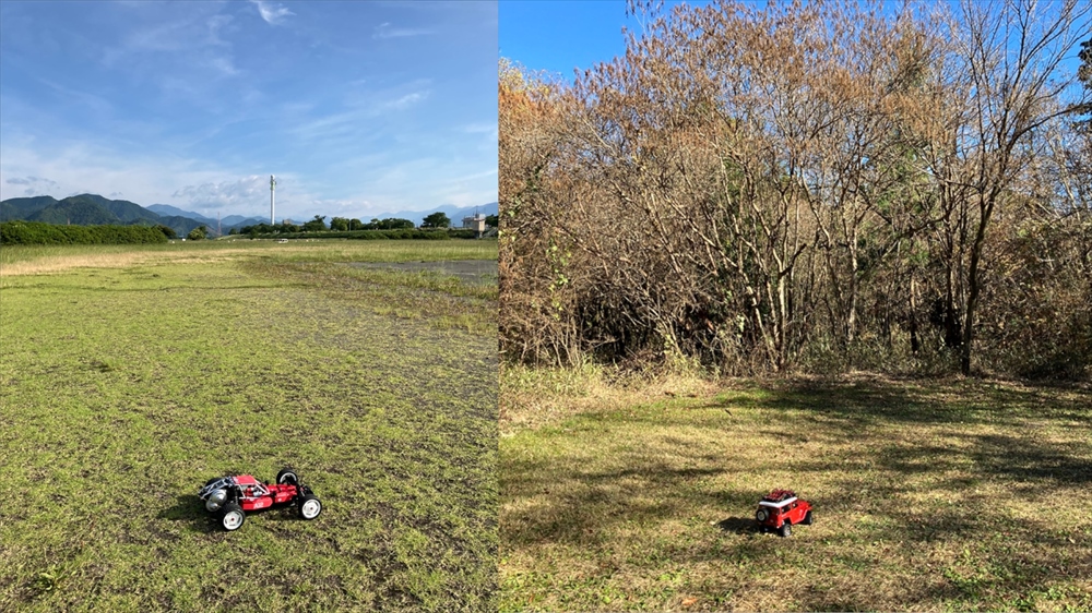 クロカンラジコンはスピードは出ませんが、実車のようなリアルな感じを演出できて走破性も抜群です。