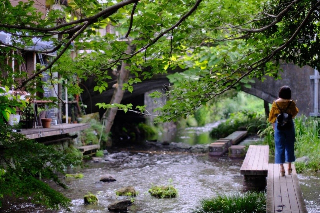 空気がひんやりしていて心地よいです。聴こえるのは川のせせらぎだけ。