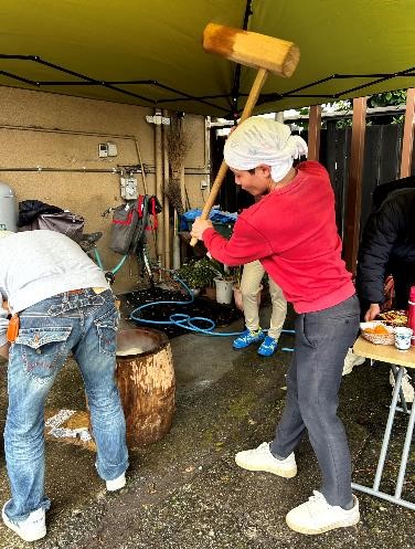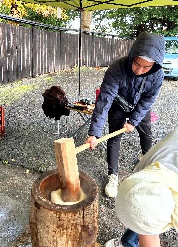 最後の一臼は念入りについて、みんなで大福を作って食べました。